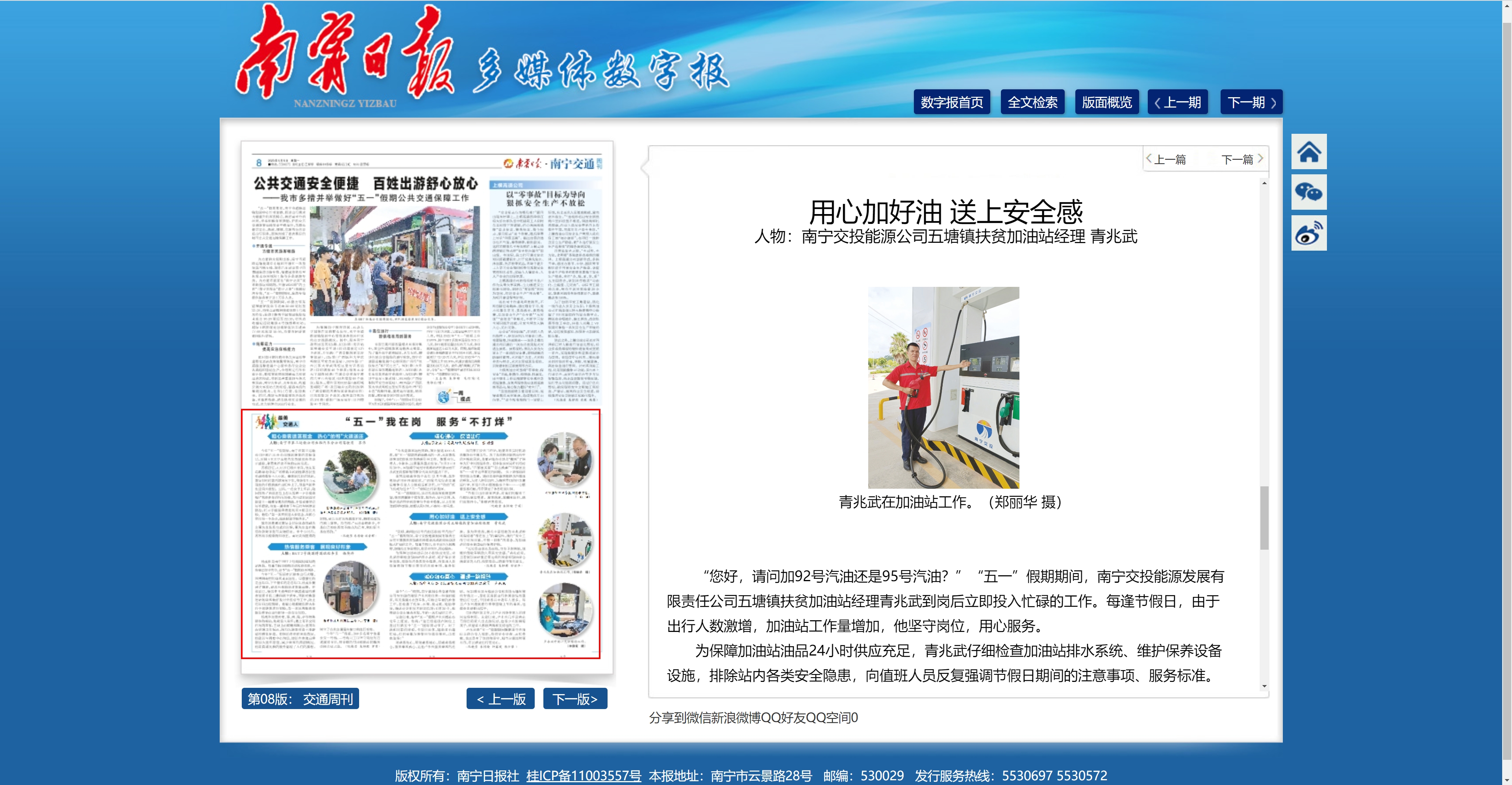 “五一”我在崗 服務“不打烊” 用心加好油 送上安全感 人物:南寧交投能源公司五塘鎮(zhèn)扶貧加油站經(jīng)理 青兆武